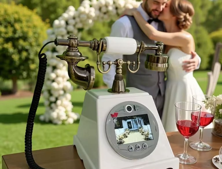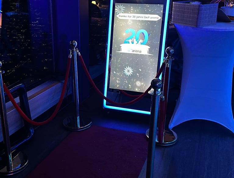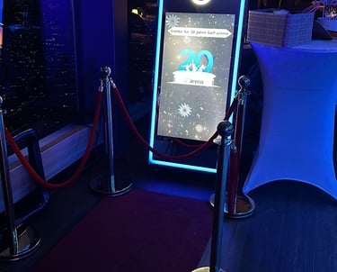 *Der dekorierte Beistelltisch ist nur verfügbar, wenn das Videogästebuch zusammen mit einer Fotobox oder einem Fotospiegel gebucht wird.